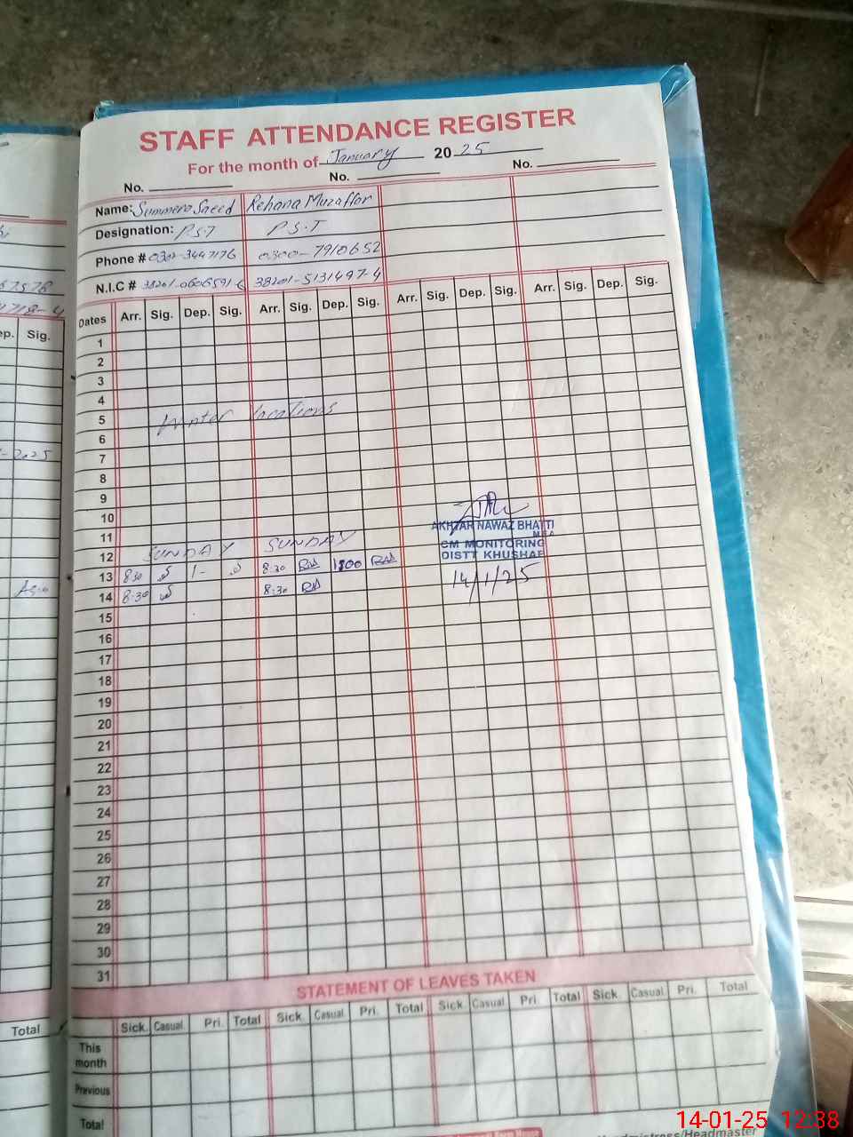 | Name: Mu**** Us**** Ba**** Designation: (School Headmaster's/Headmistress's) PST Phone/Cell Number: 03**** |