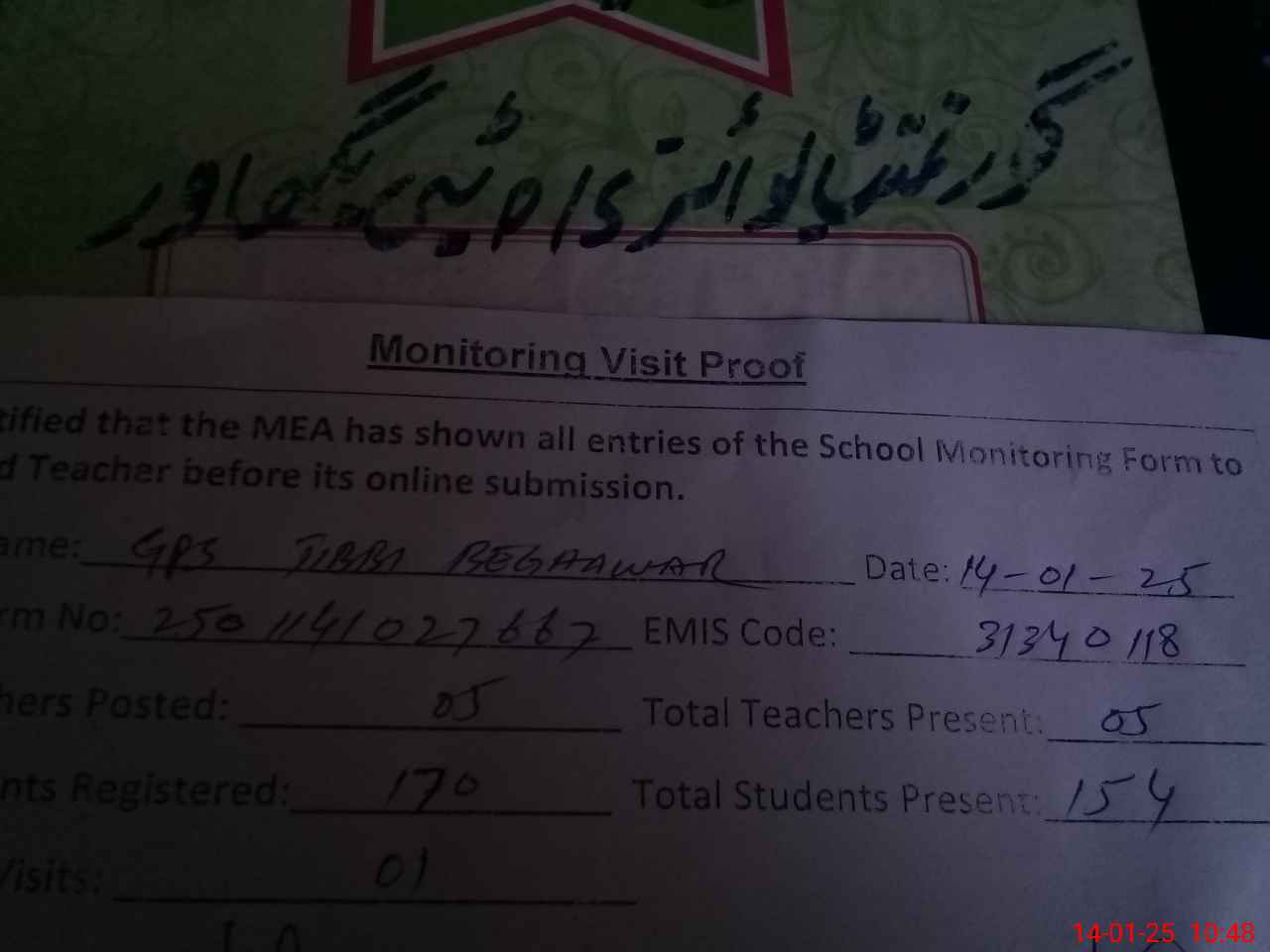 | EMIS Code: 31340118 | Name of School: GPS TIBBI BEGHWER CHAK NO. 168/P | |||
