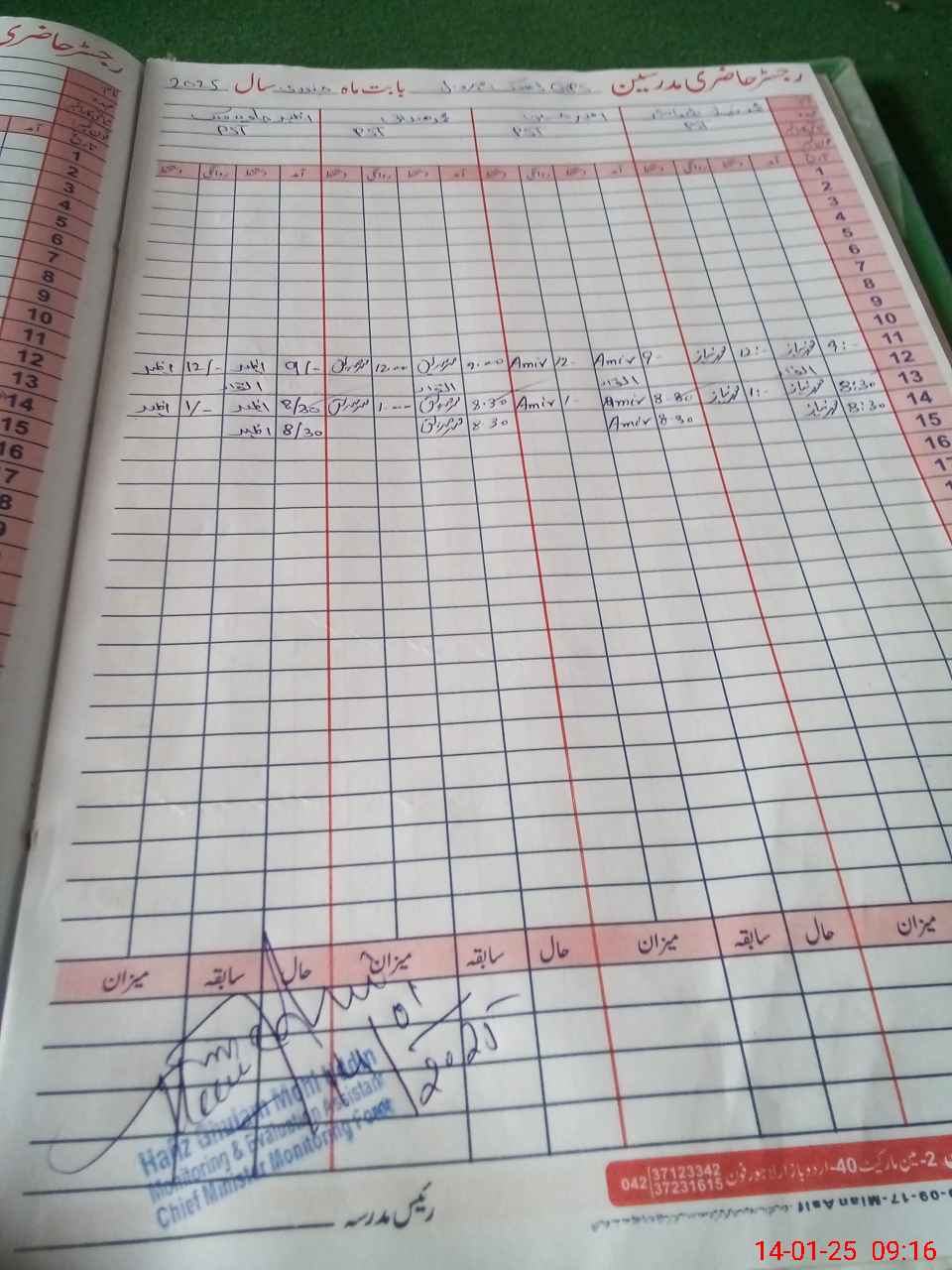 | CNIC | Full Name | Designation | R/C | Absence During Last Calender Month |