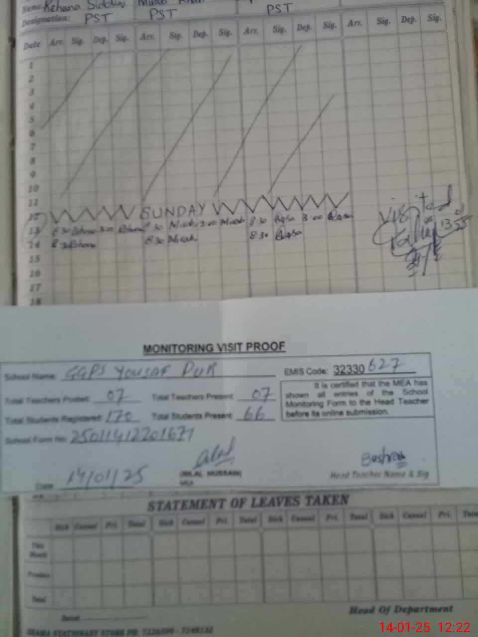 | Attendance Register | Head Teacher | MEA with School | Visit Proof |