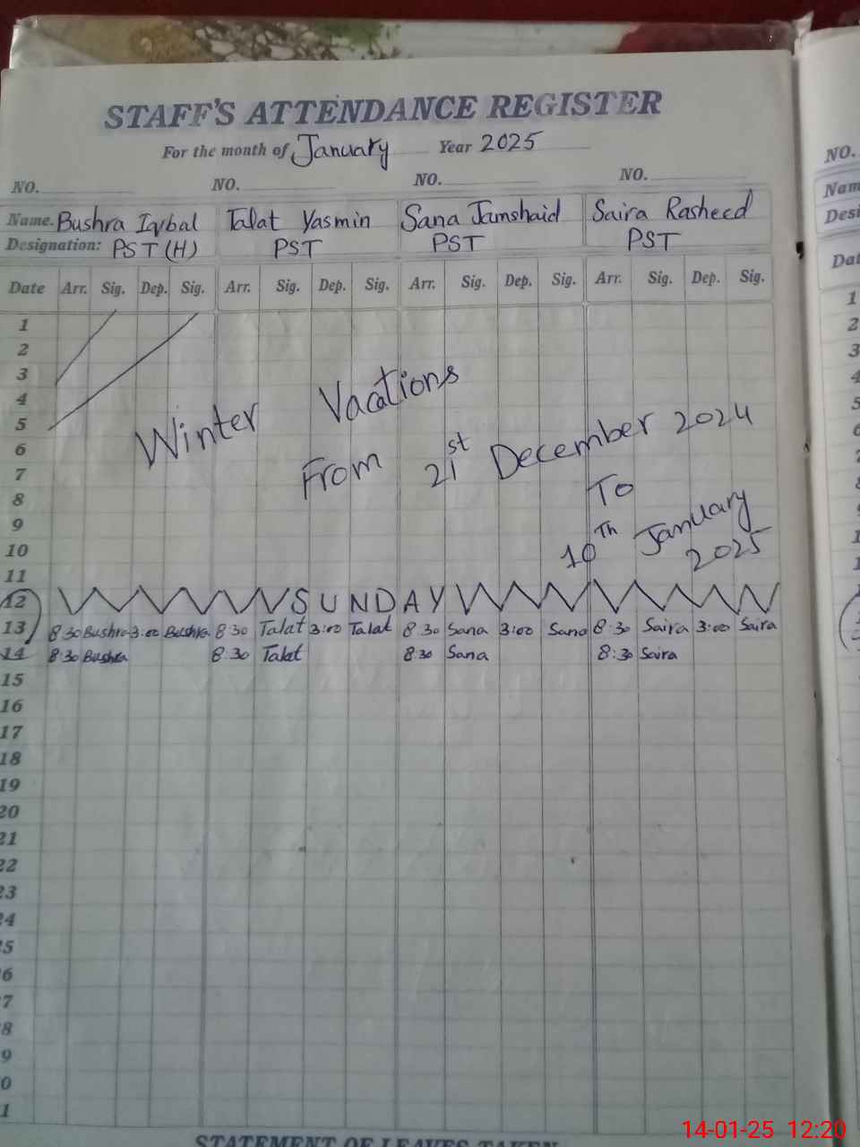 | CNIC | Full Name | Designation | R/C | Absence During Last Calender Month |