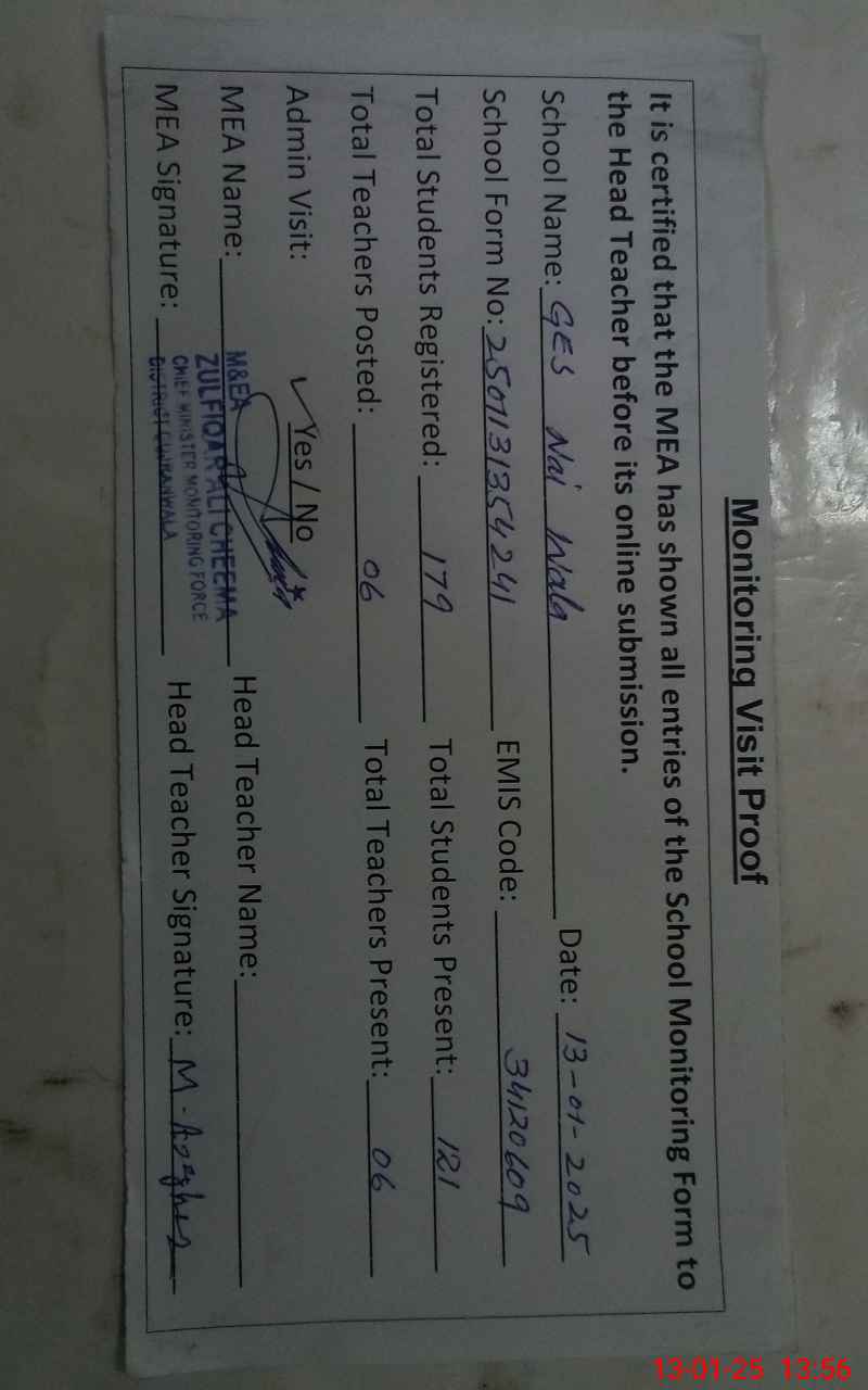 | EMIS Code: 34120609 | Name of School: GES NAI WALA | |||