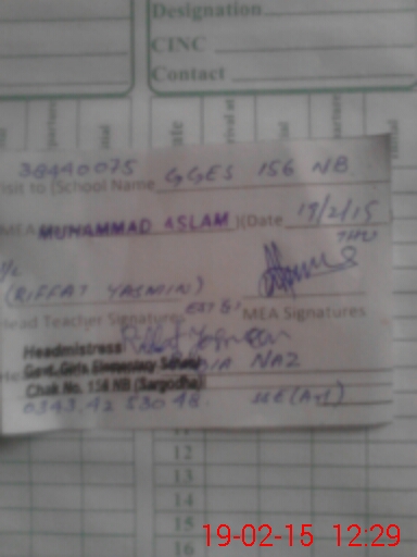 | EMIS Code: 38440075 | Name of School: GGES CHAK NO 156 NB | |||