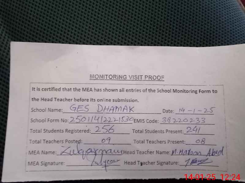 | EMIS Code: 38220233 | Name of School: GES DHAMAK | |||