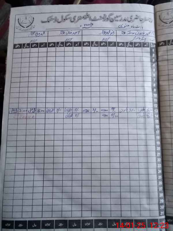 | District: KHUSHAB | Tehsil: NOORPUR THAL | Markaz: NOOR PUR (EAST) (MALE) | Level: Middle | |