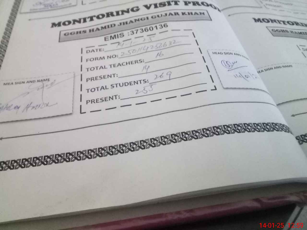 | EMIS Code: 37360136 | Name of School: GGHS HAMID JHANGI | |||