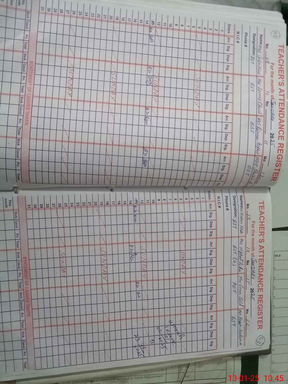 | CNIC | Full Name | Designation | R/C | Absence During Last Calender Month |