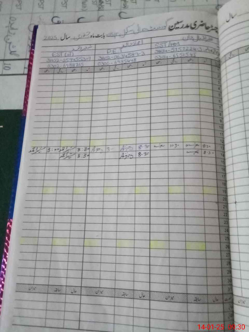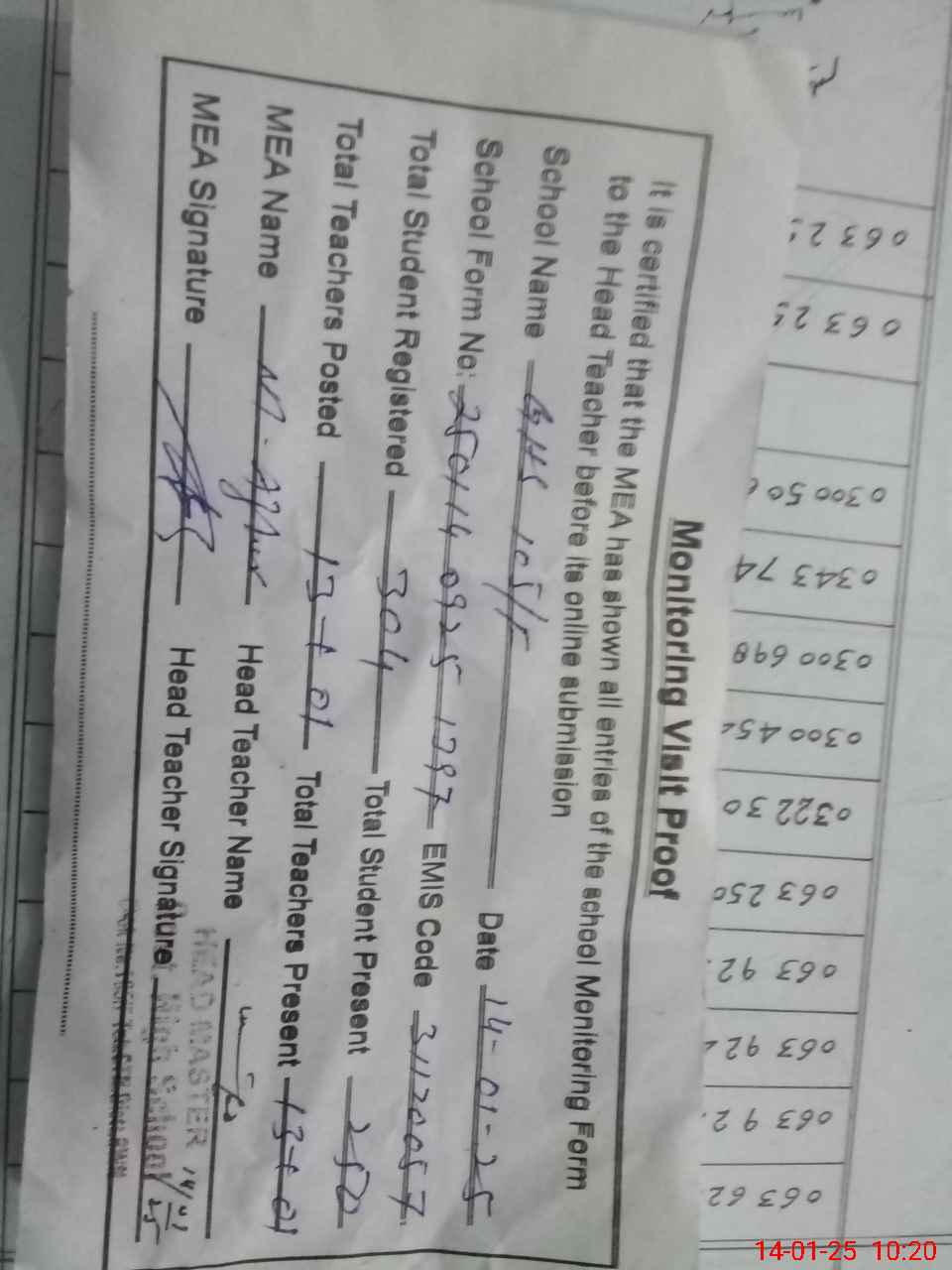 | Name: Sh**** Ah**** Designation: (School Headmaster's/Headmistress's) Est Ot Phone/Cell Number: 03**** |