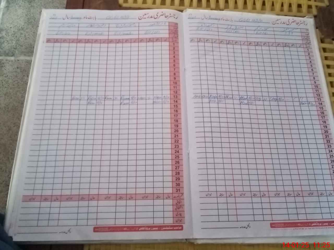 | CNIC | Full Name | Designation | R/C | Absence During Last Calender Month |