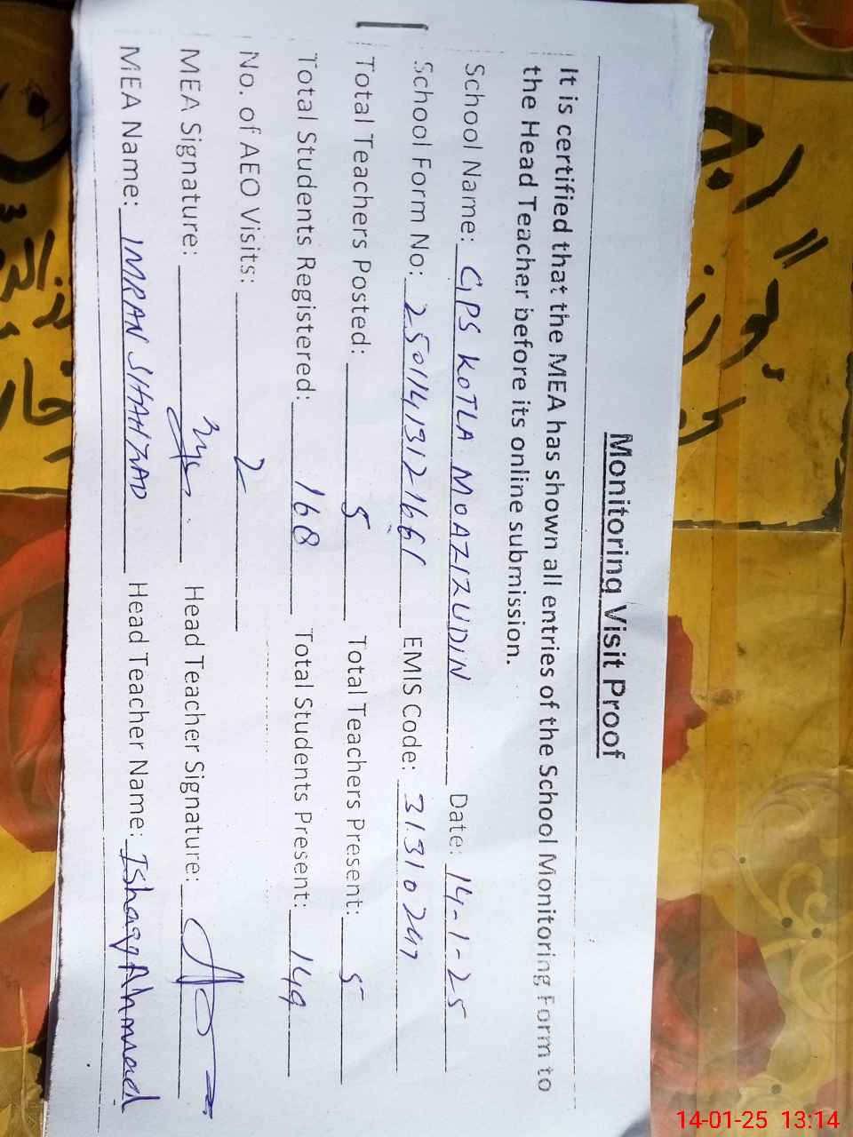 | EMIS Code: 31310247 | Name of School: GPS KOTLA MOAZIZ-UD-DIN | |||