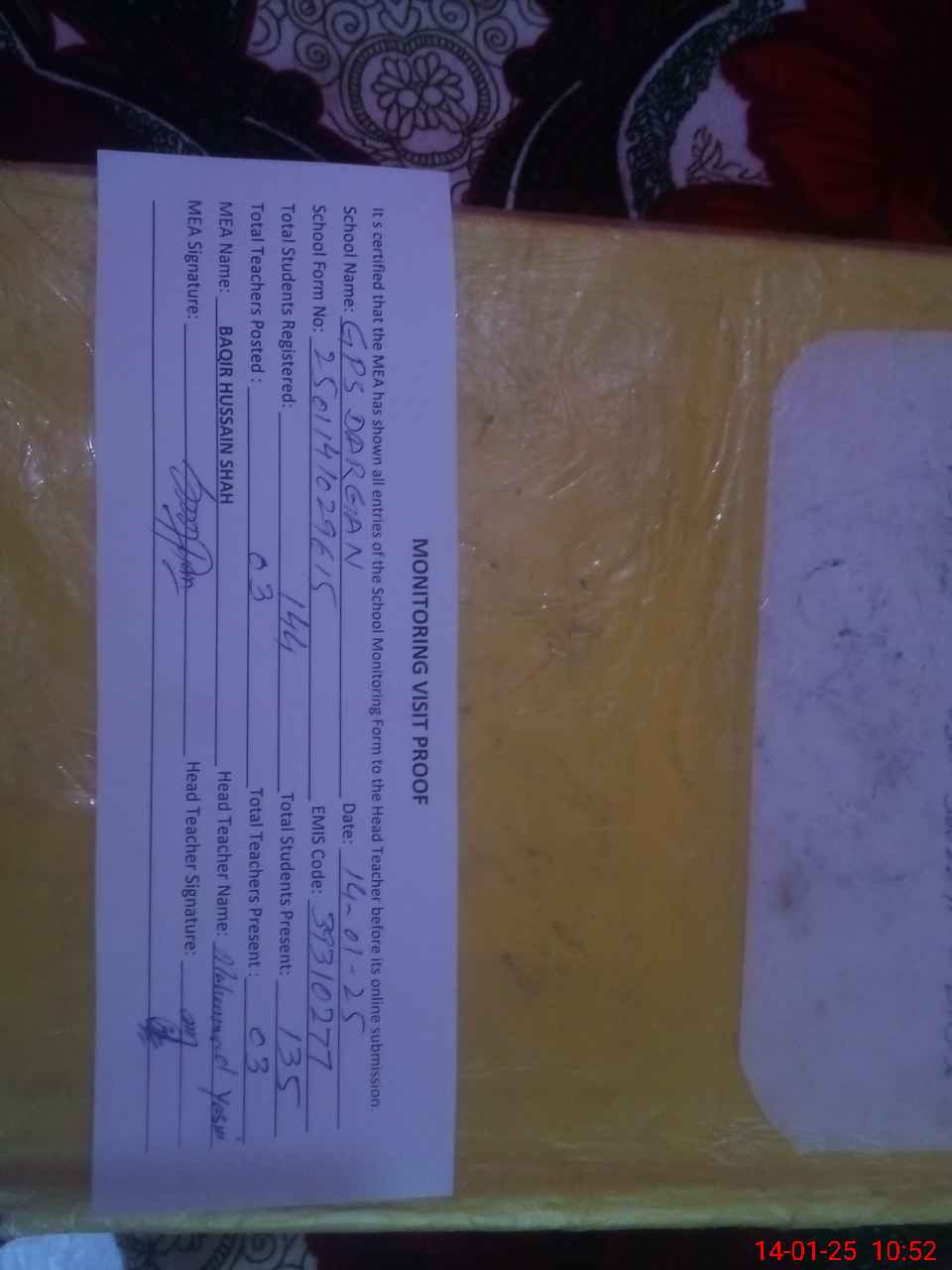 | EMIS Code: 39310277 | Name of School: GPS DARGAN | |||