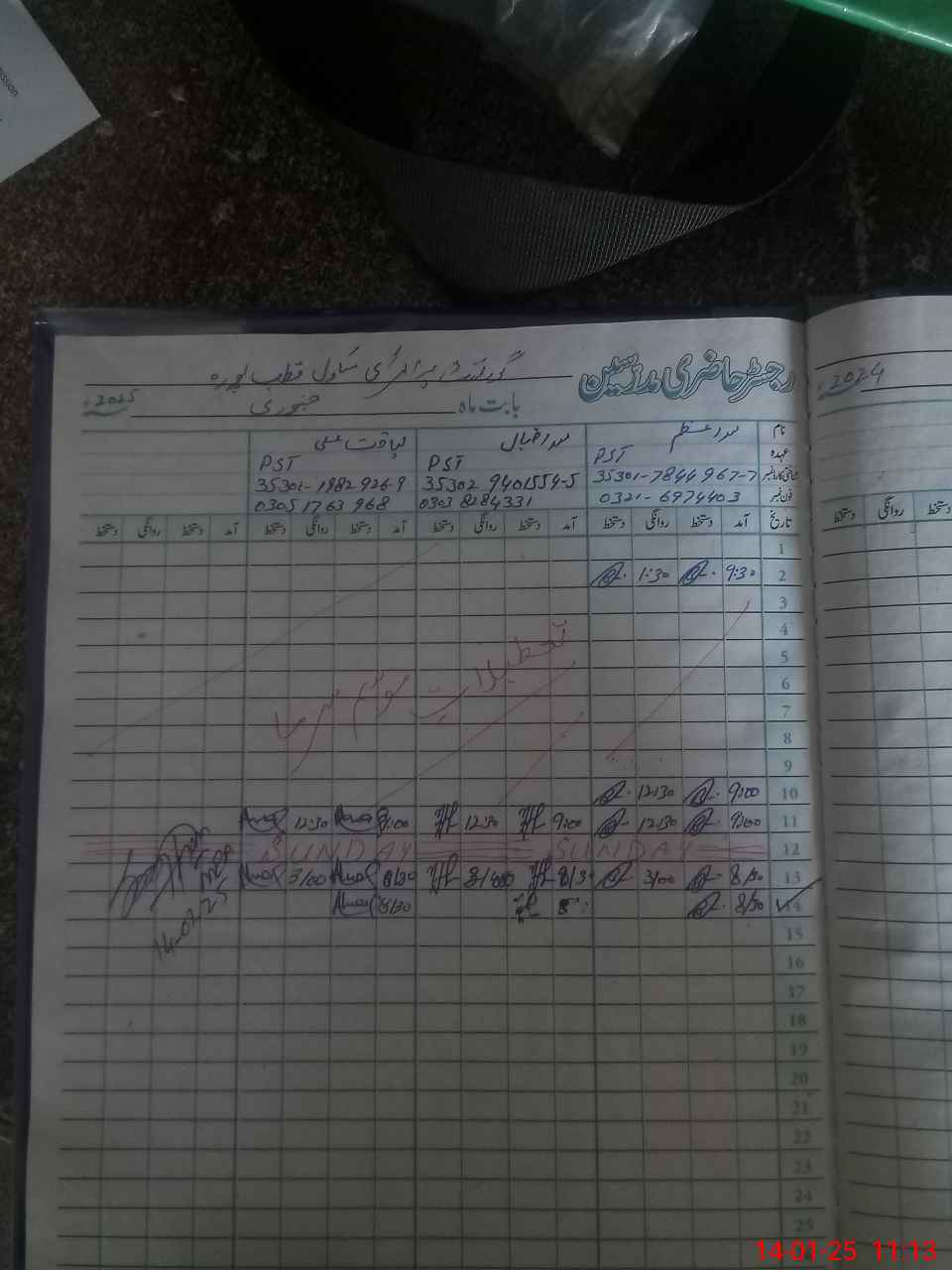 | CNIC | Full Name | Designation | R/C | Absence during last cal. month |
