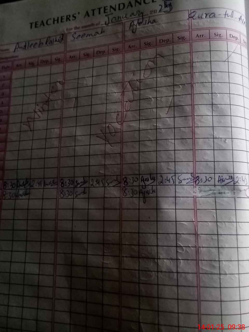 | Attendance Register | Head Teacher | MEA with School | Visit Proof |