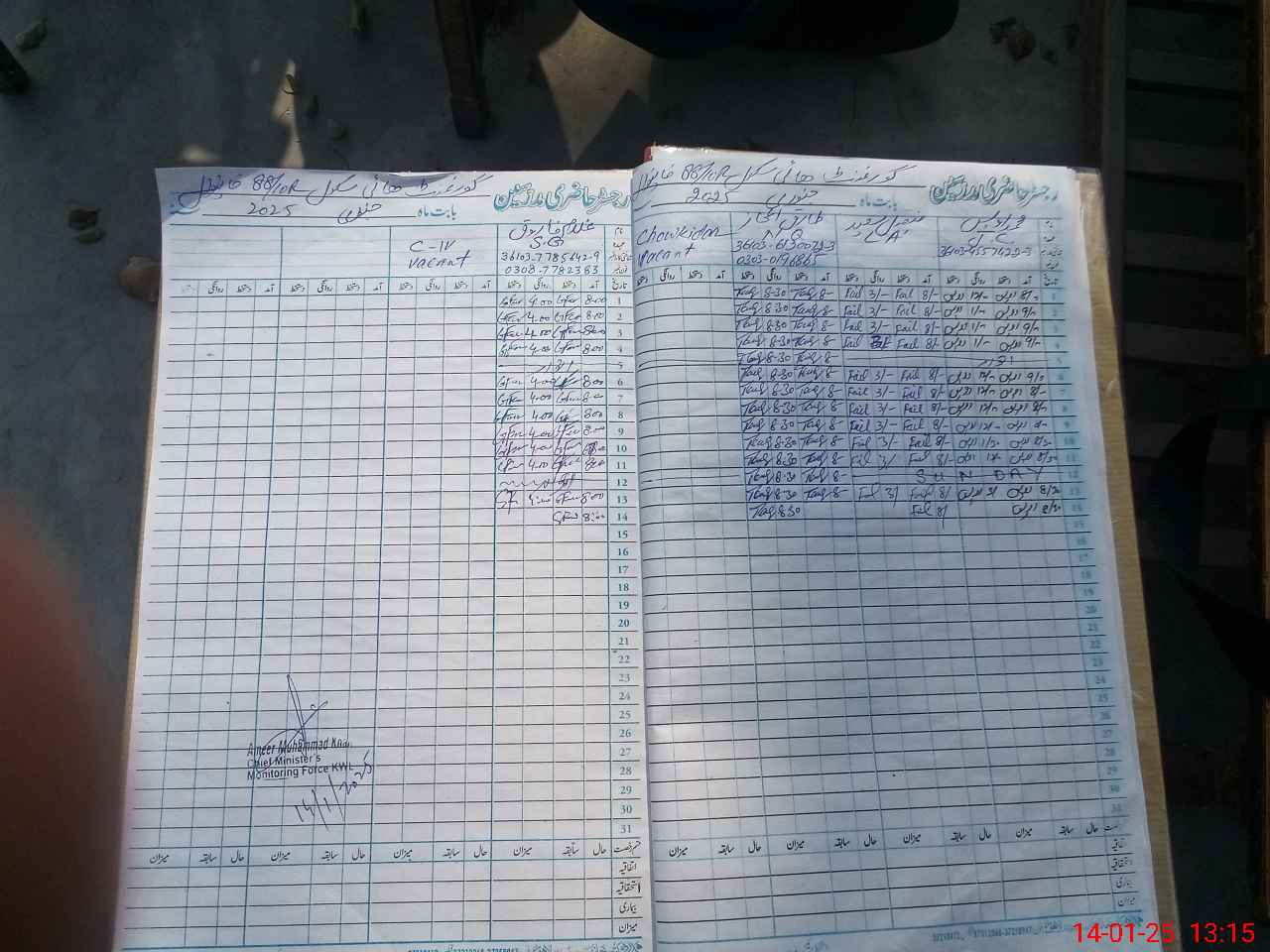 | Remarks (Use Separate Page if Required): JC Muhammad Awaits ABSENT in authorised Head Master Afzal retired on 31 December 2024 Please update teacher attendance list | |||||