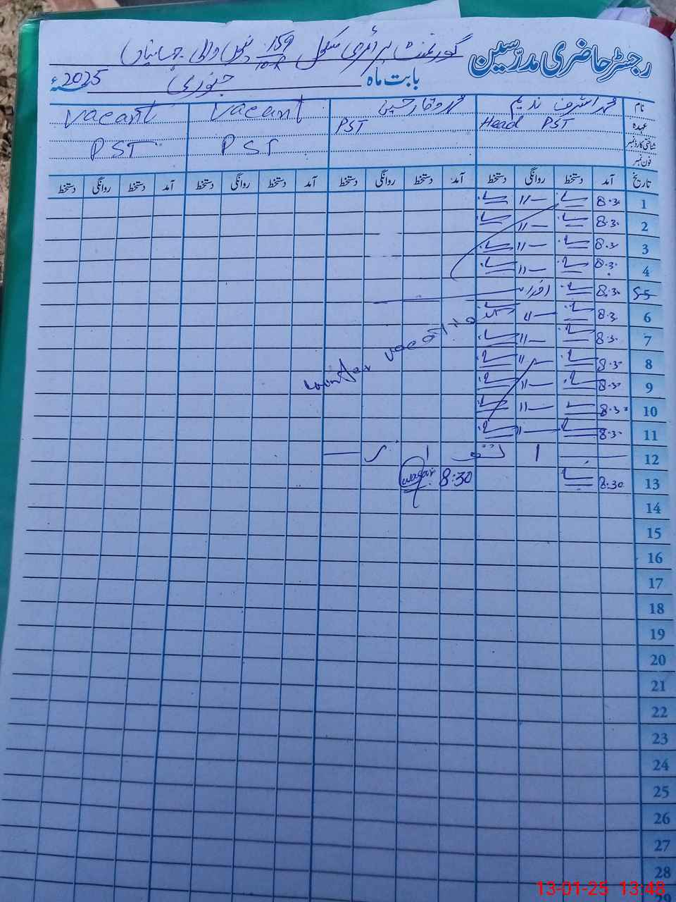 | Name: M.AS**** Designation: (School Headmaster's/Headmistress's) PST Phone/Cell Number: 03**** |