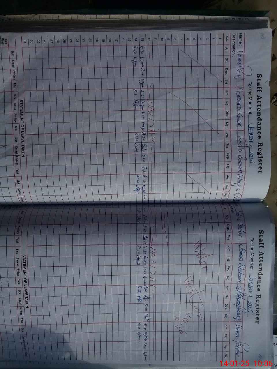 | CNIC | Full Name | Designation | R/C | Absence During Last Calender Month |