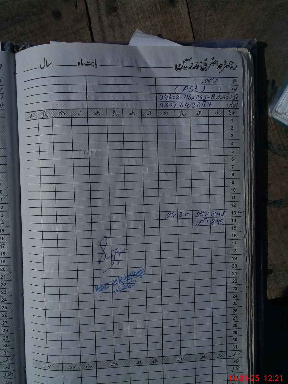 | Name: Na**** Ja**** Designation: (School Headmaster's/Headmistress's) Pst (SC.-MATH) Phone/Cell Number: 03**** |