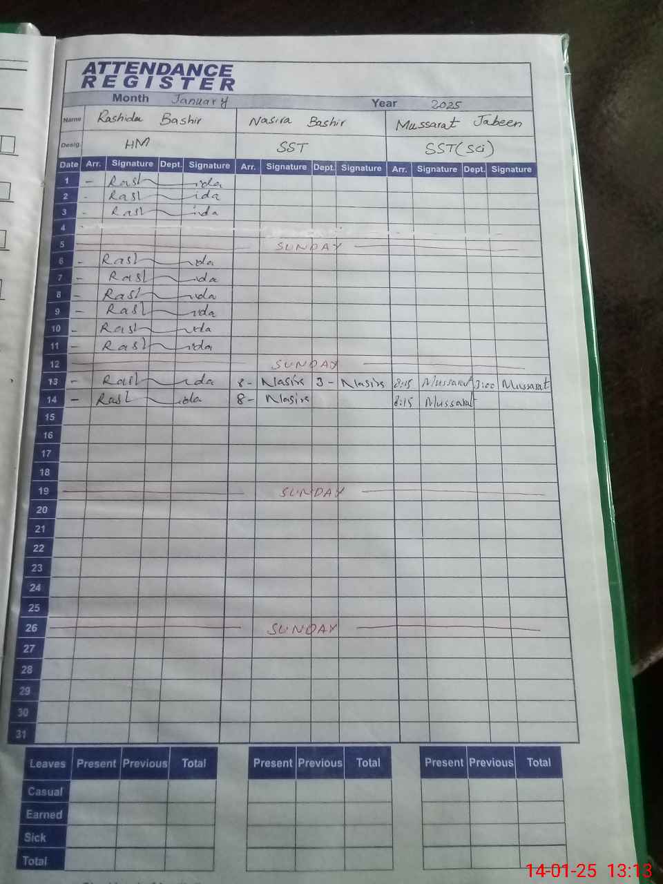 | 33**** | Za**** Na**** | 3 | 1 | 0 | 0 | 0 | 0 | 0 | 0 | 0 | 0 | 0 | Absent (Un-Authorized) |