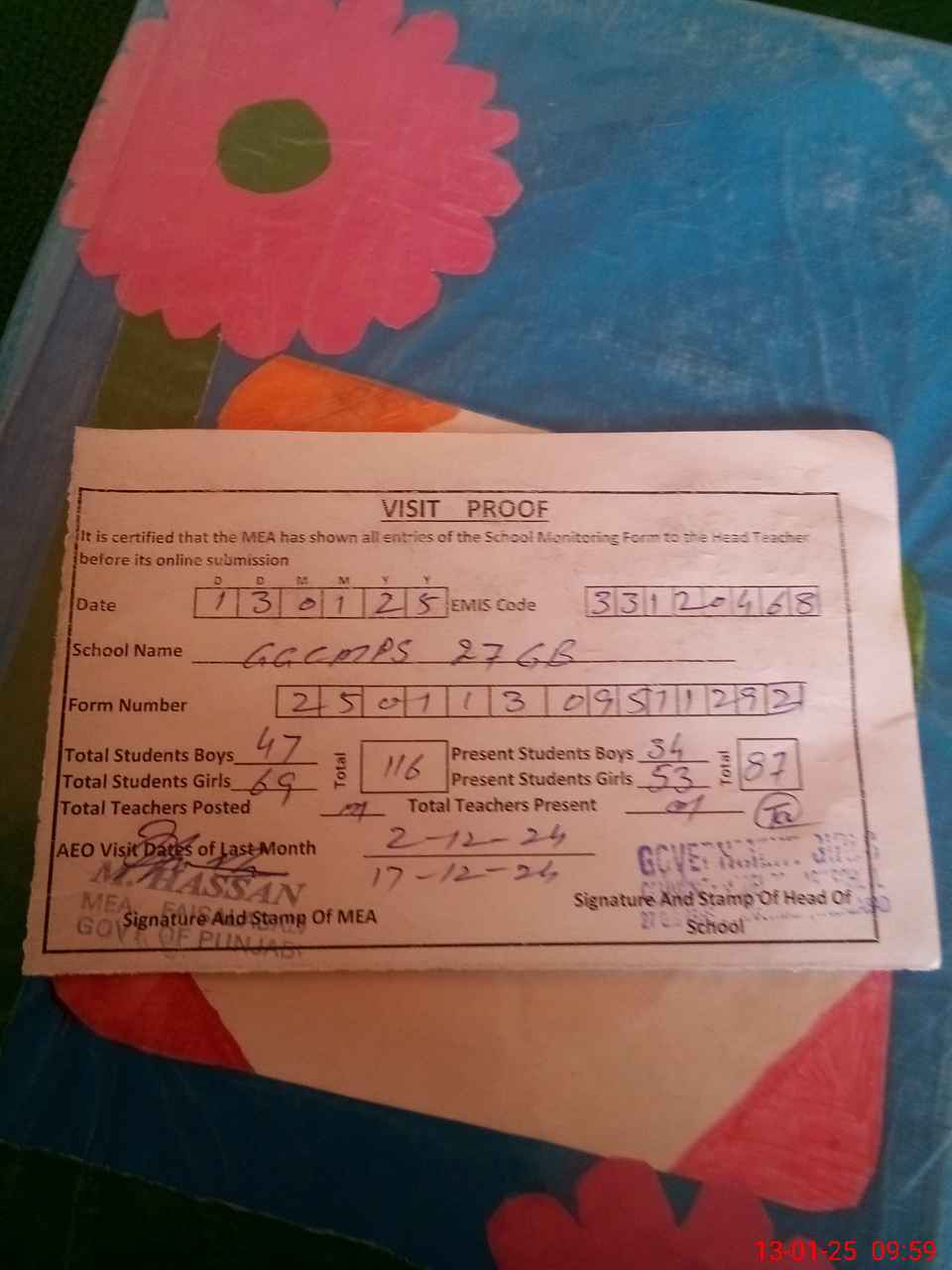 | EMIS Code: 33120468 | Name of School: GGCMS CHAK 27 GB SATIANA | |||
