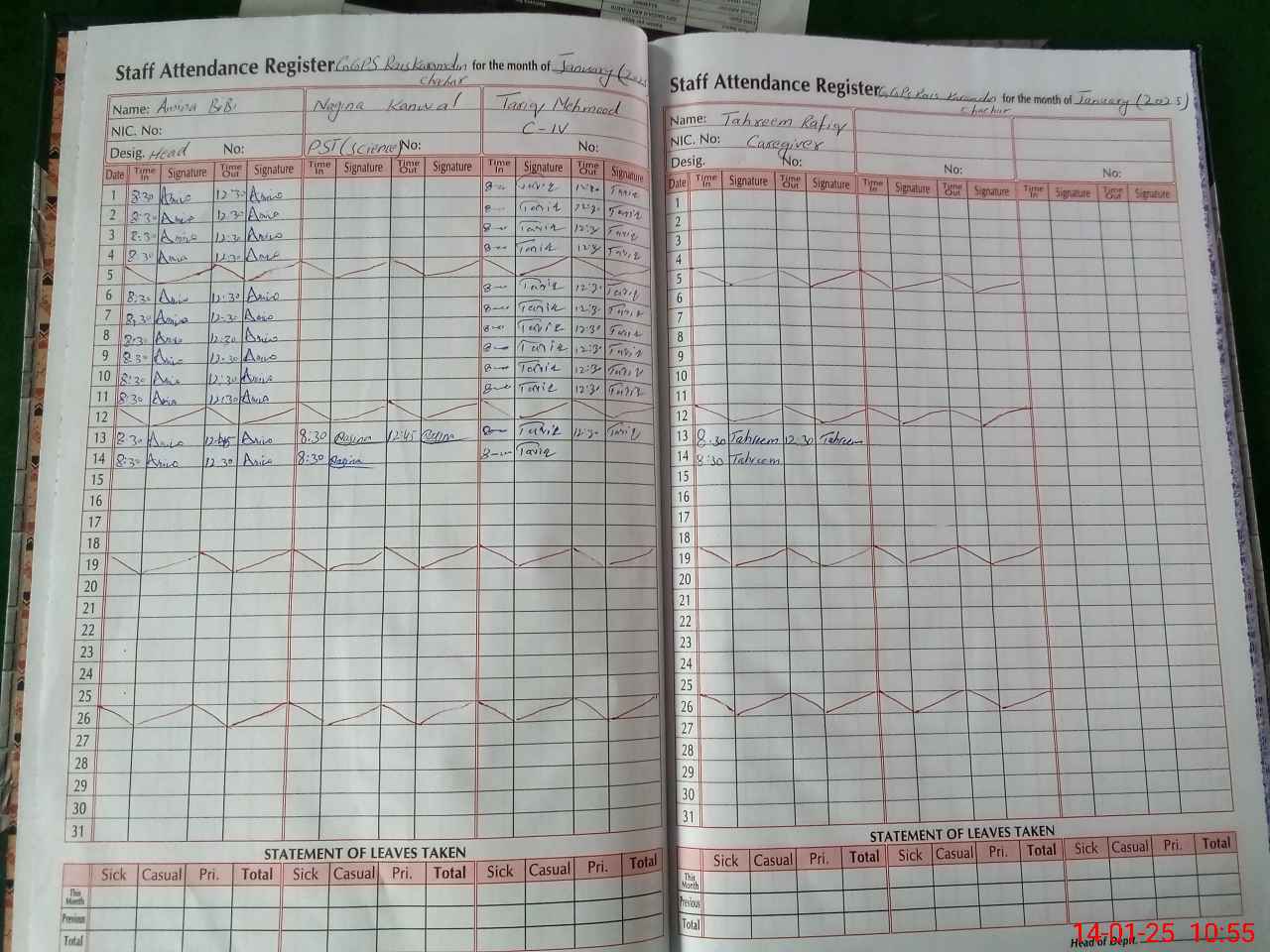 | CNIC | Full Name | Designation | R/C | Absence During Last Calender Month |