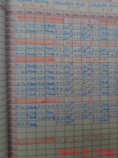 | CNIC | Full Name | Designation | R/C | Absence During Last Calender Month |