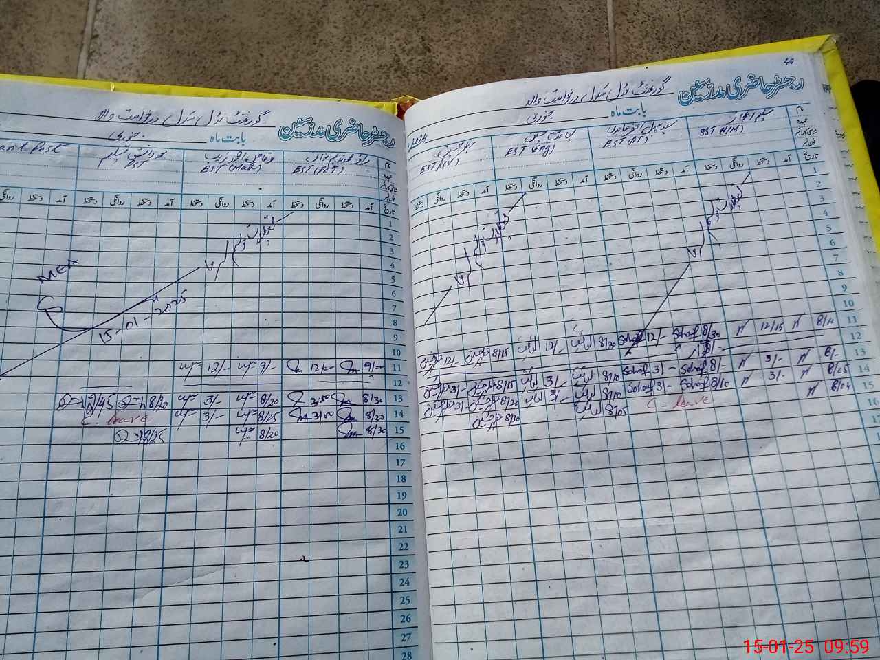 | CNIC | Full Name | Designation | R/C | Absence During Last Calender Month |