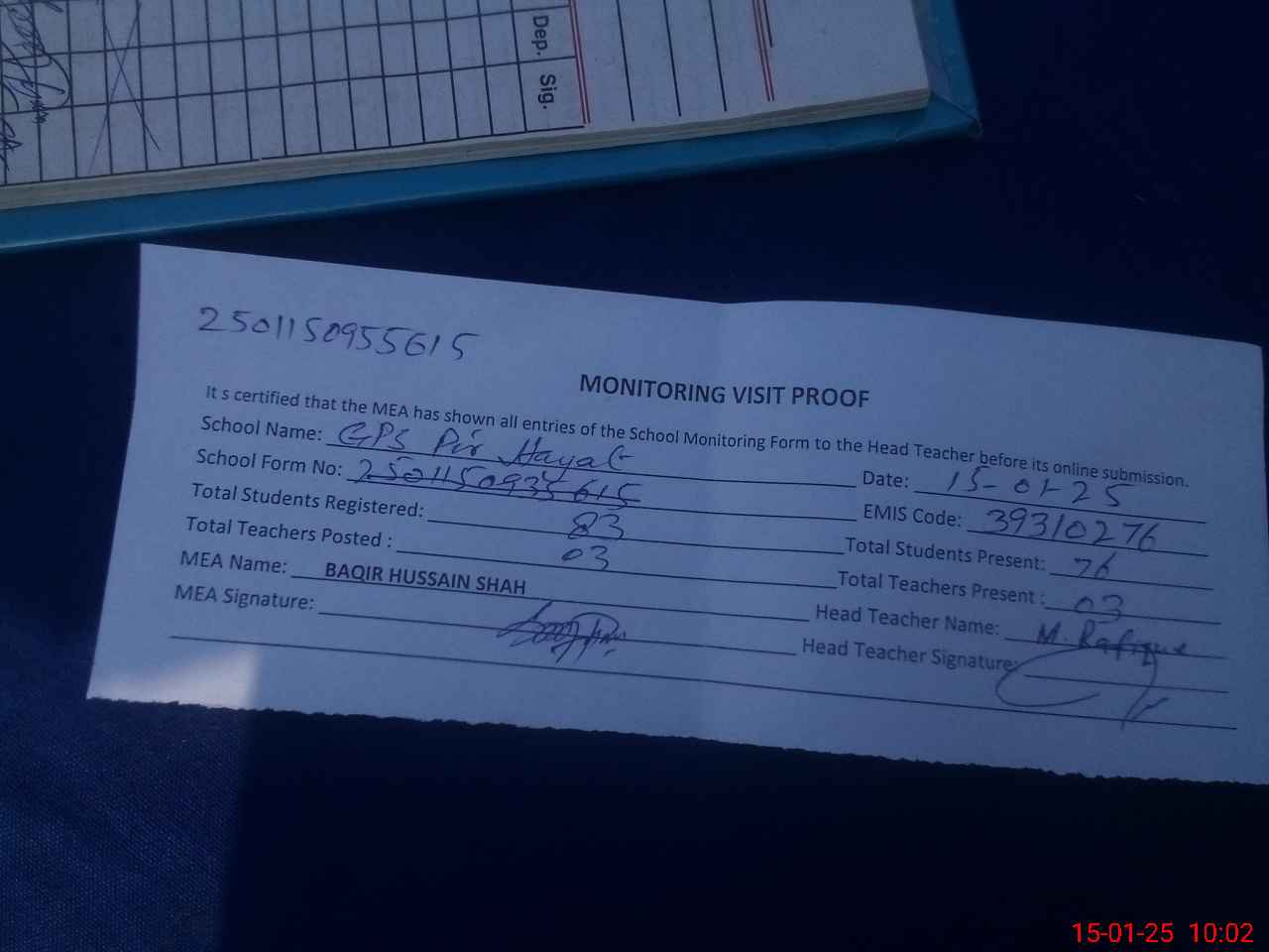 | EMIS Code: 39310276 | Name of School: GPS PIR HAYAT | |||