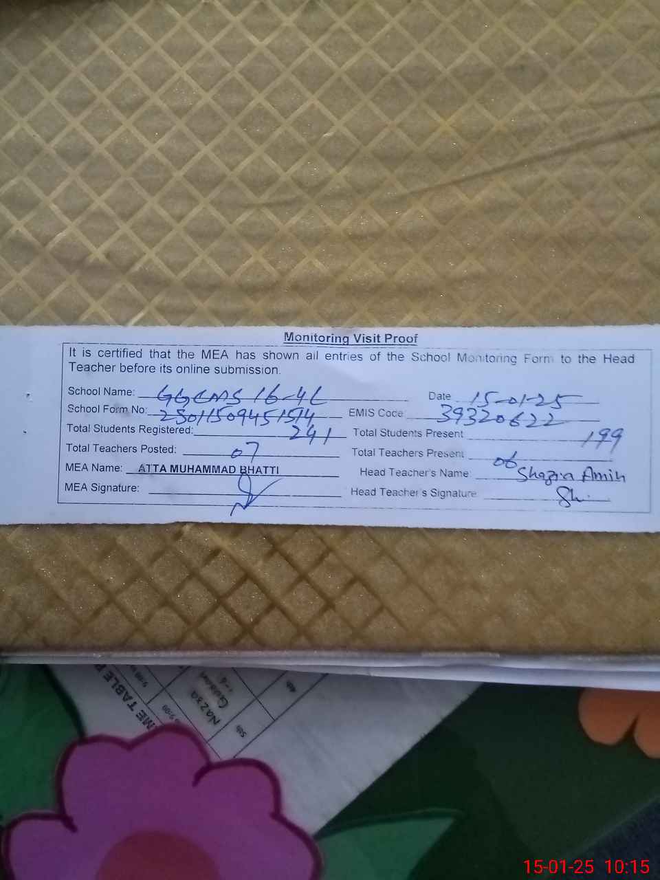 | Certified that this School was Inspected by the Undersigned MEA/DMO Today and the Information Stated Above is as Per Record. | |||||