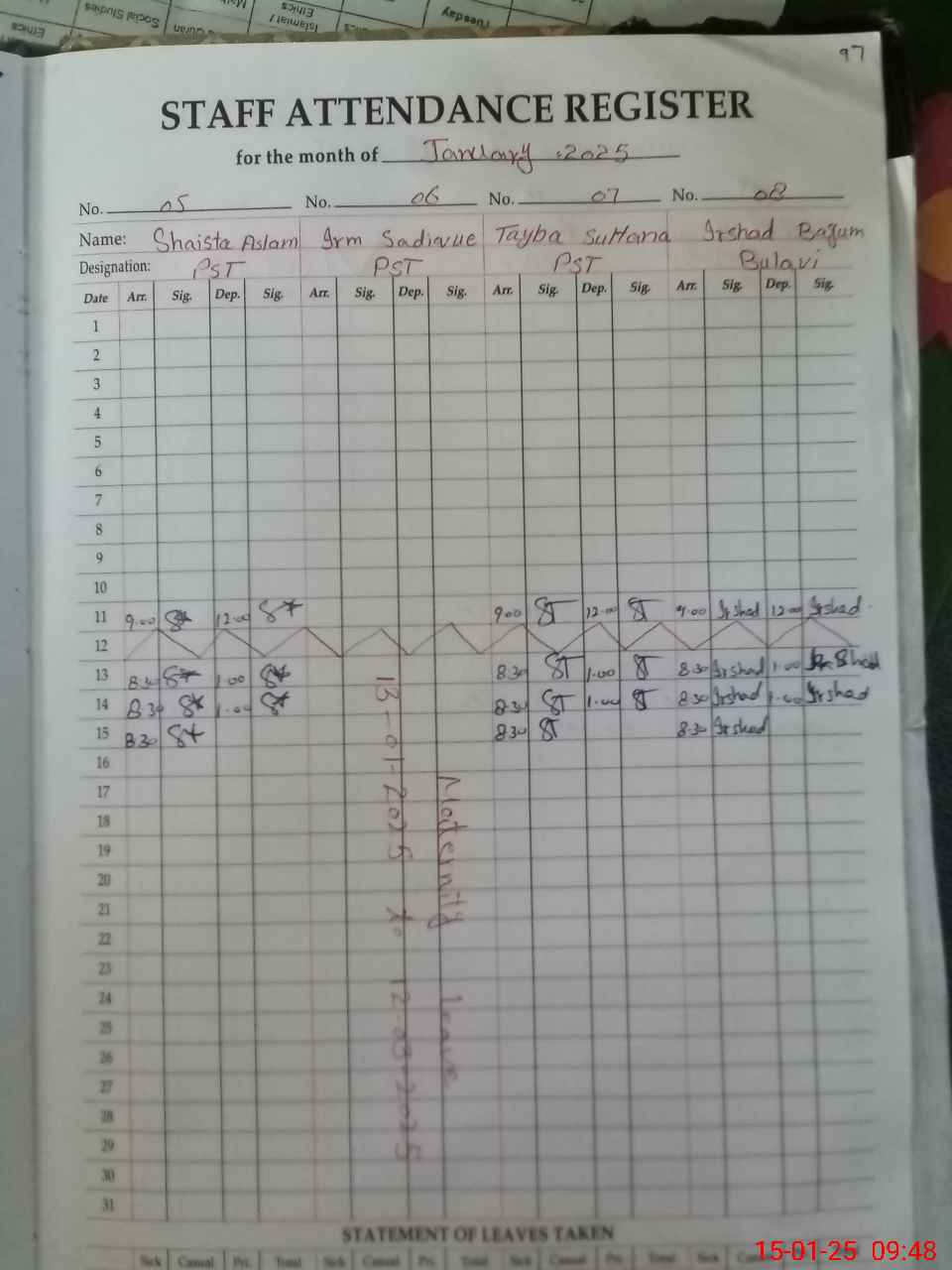 | No. of Students Present - Female | 31 | 0 | 25 | 24 | 34 | 28 | 30 | 27 | 199 | |||||||