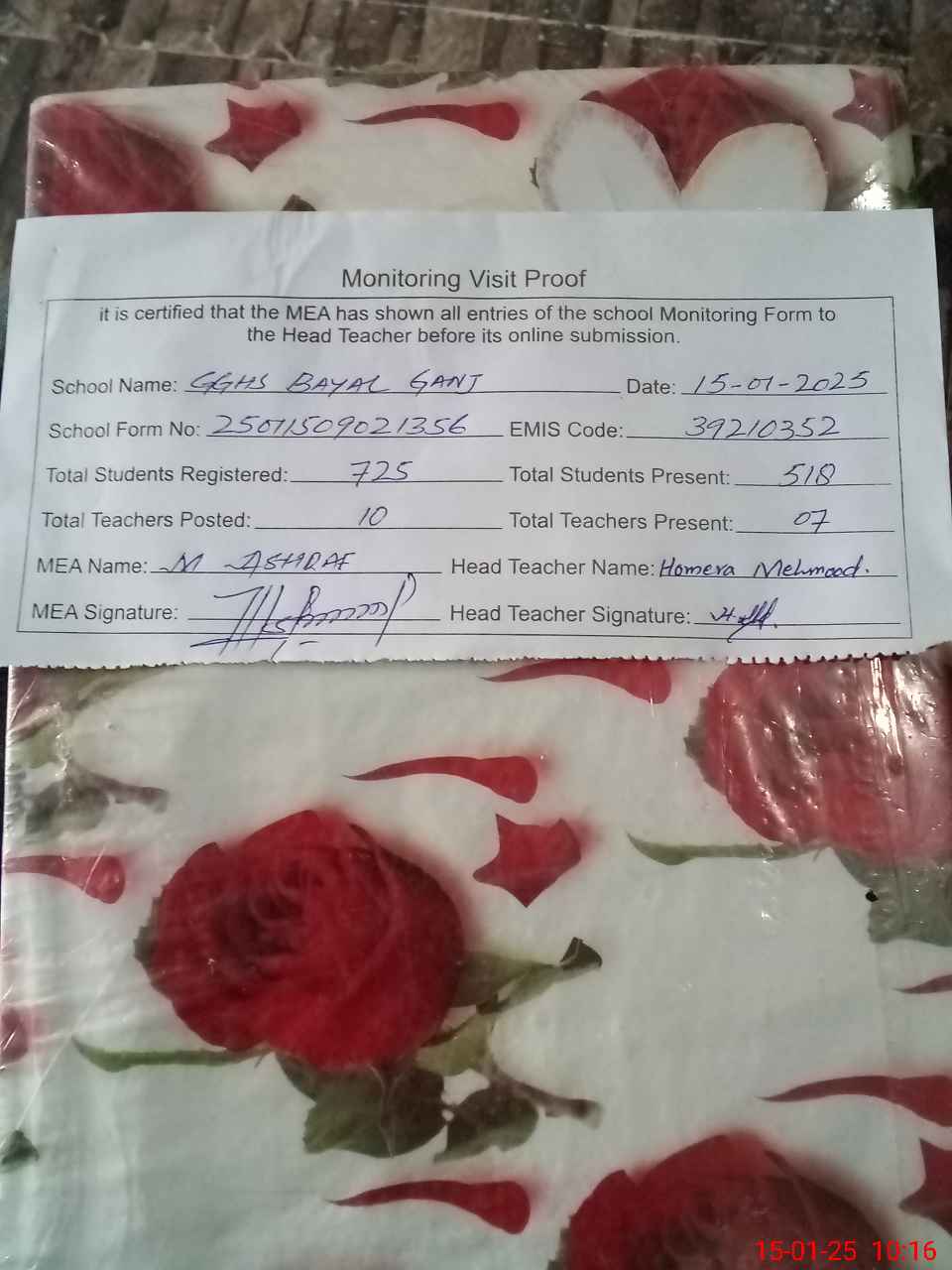 | EMIS Code: 39210352 | Name of School: GGHS BAYAL GANJ PAKPATTAN | |||