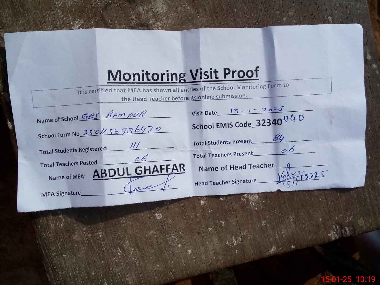 | EMIS Code: 32340040 | Name of School: GES RAM PUR | |||