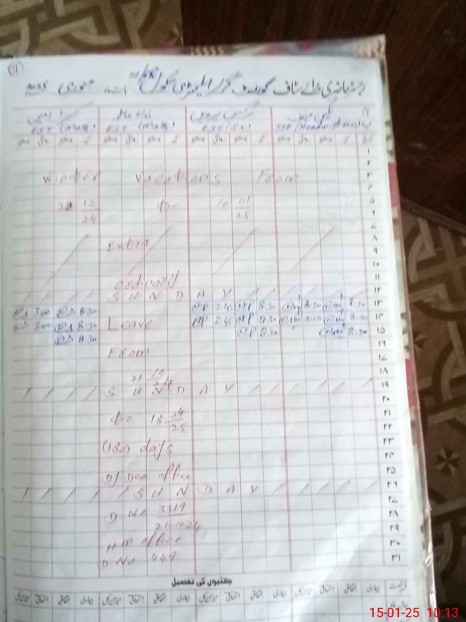 | Leave | Duty | Absent | Maternity | Medical | Ex- Pak |