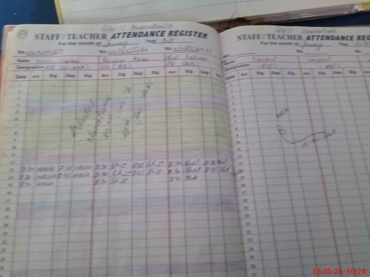 | CNIC | Full Name | Designation | R/C | Absence During Last Calender Month |