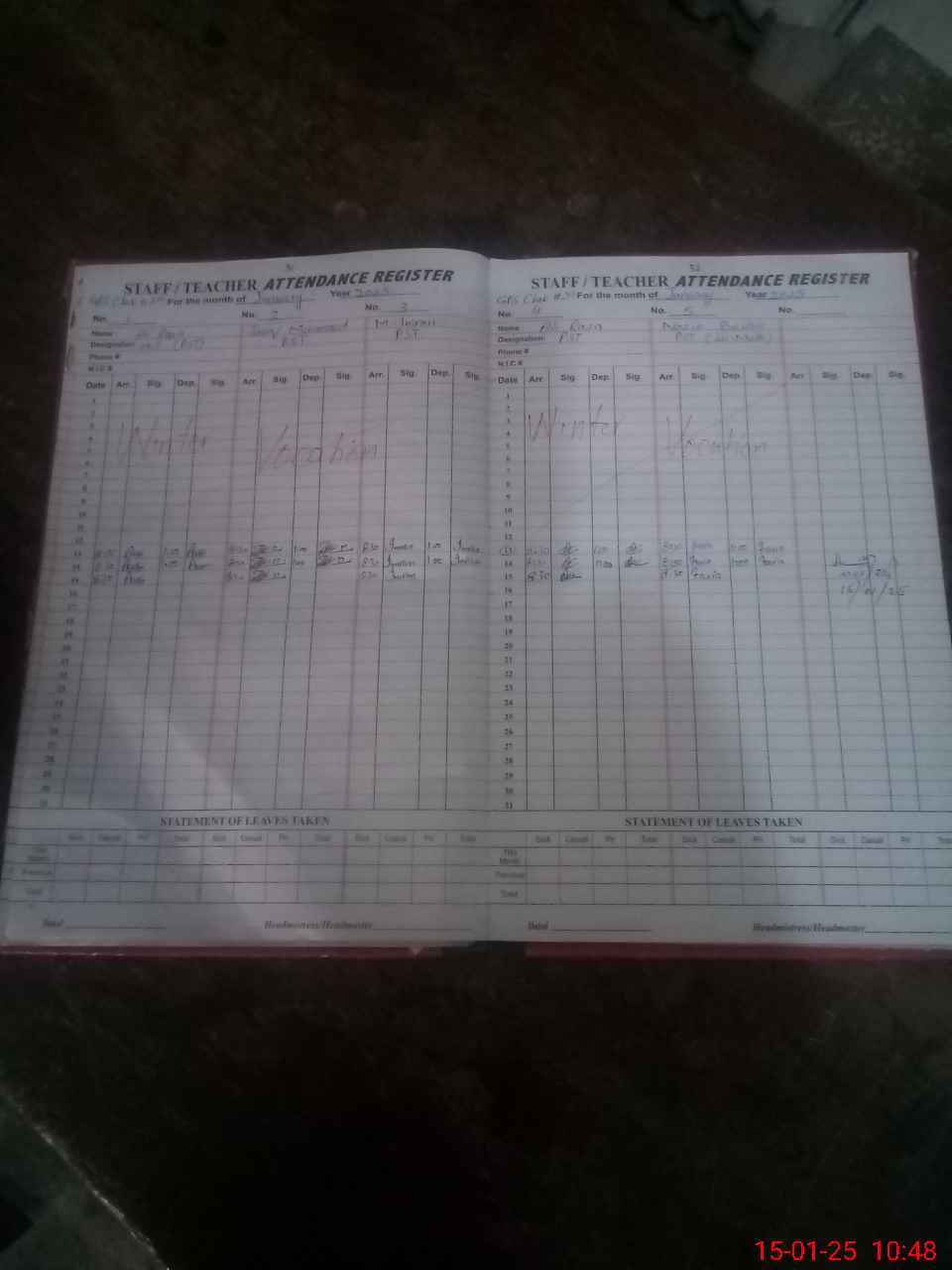 | CNIC | Full Name | Designation | R/C | Absence During Last Calender Month |