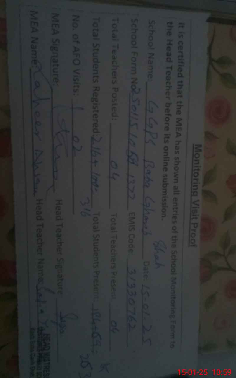 | EMIS Code: 31330762 | Name of School: GGPS BASTI BABA GHARIB SHAH | |||
