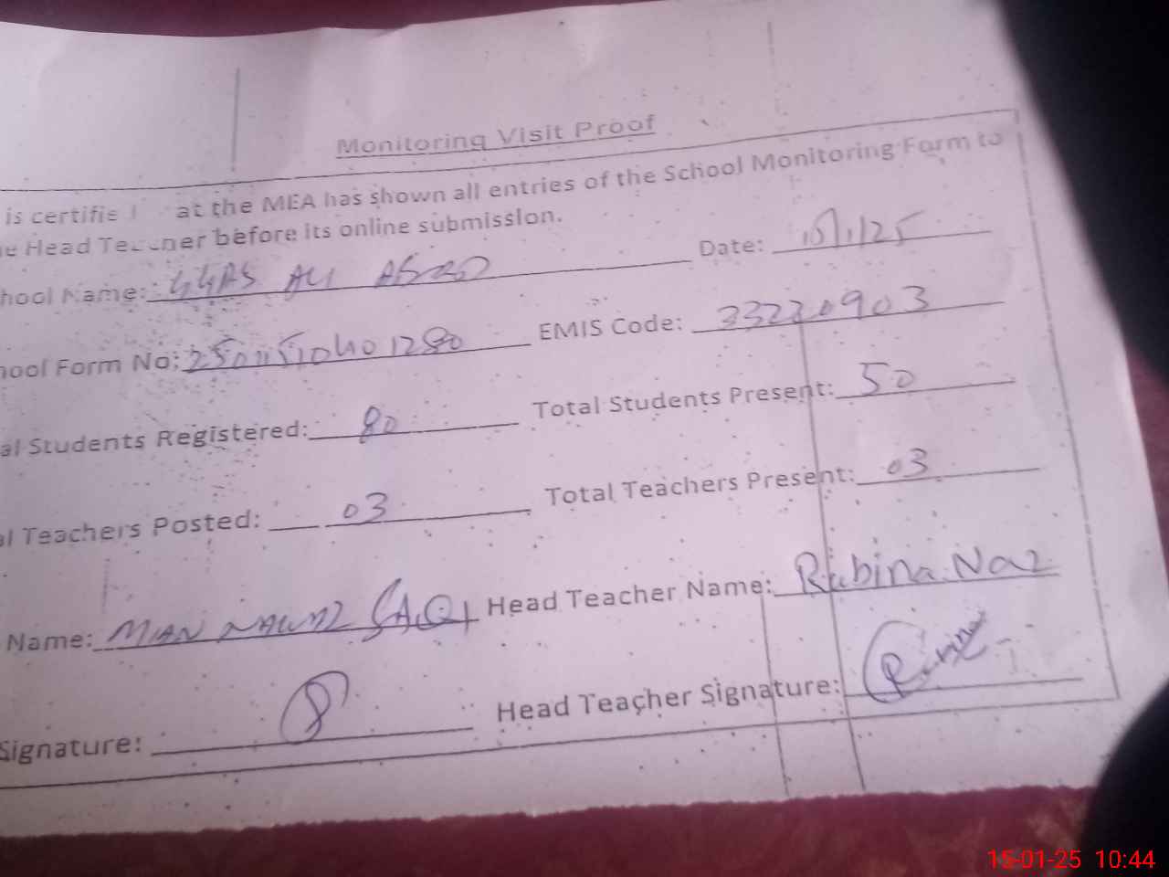 | Name: Ru**** Na**** Designation: (School Headmaster's/Headmistress's) PST Phone/Cell Number: 03**** |