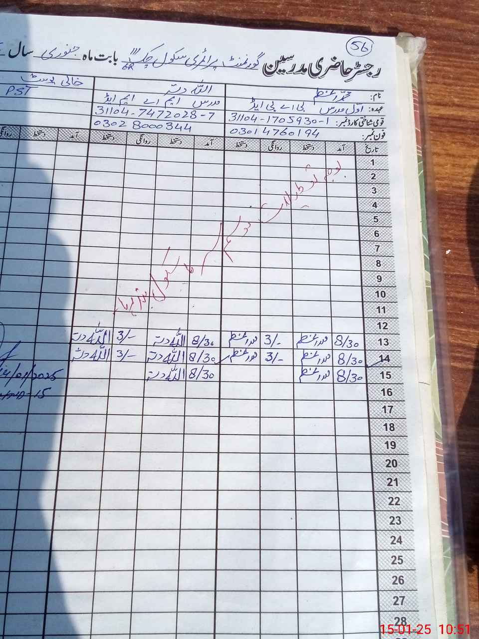 | Name: Mu**** Az**** Designation: (School Headmaster's/Headmistress's) PST Phone/Cell Number: 03**** |