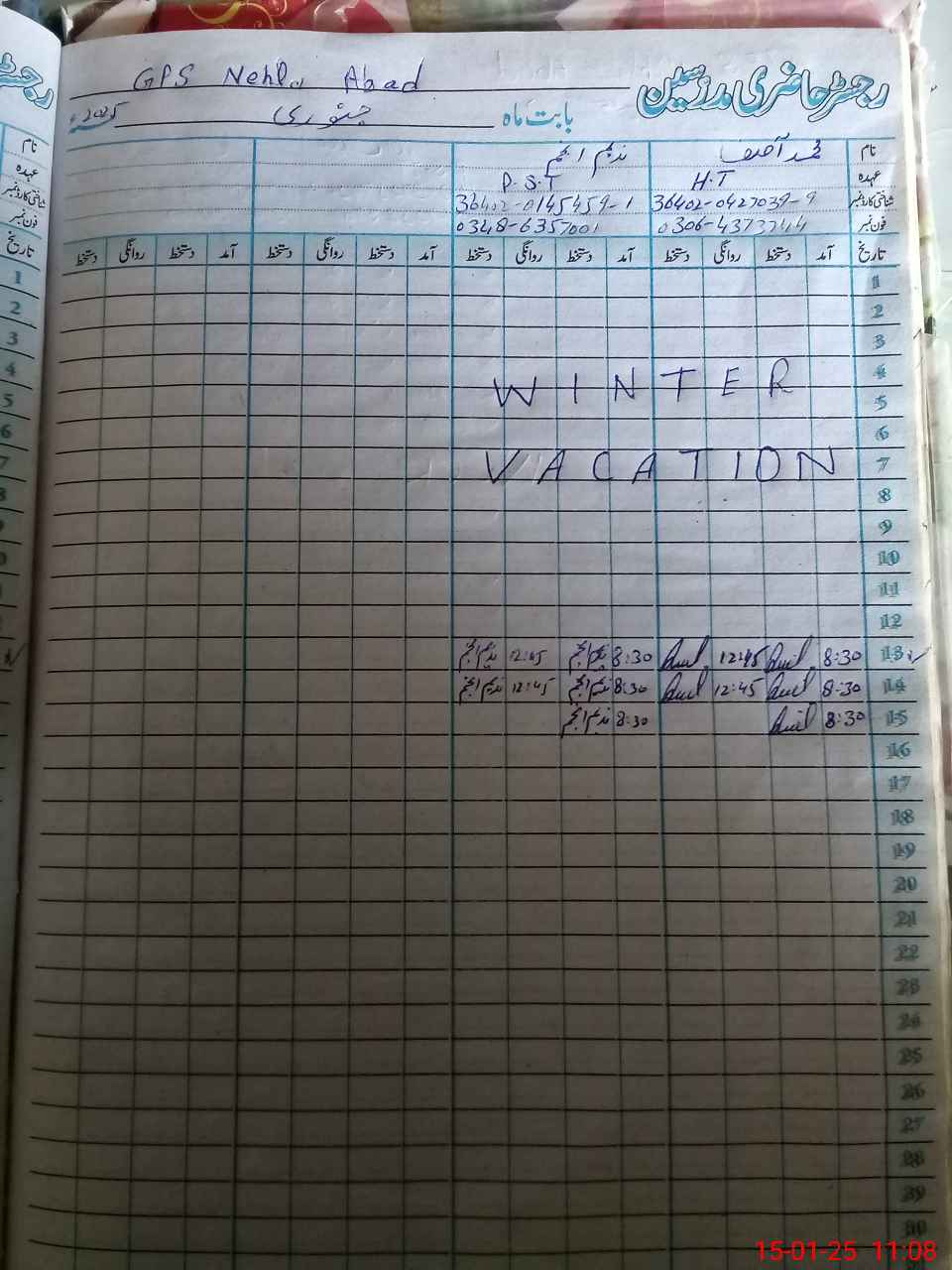 | Name: MAS**** Designation: (School Headmaster's/Headmistress's) PST Phone/Cell Number: 03**** |