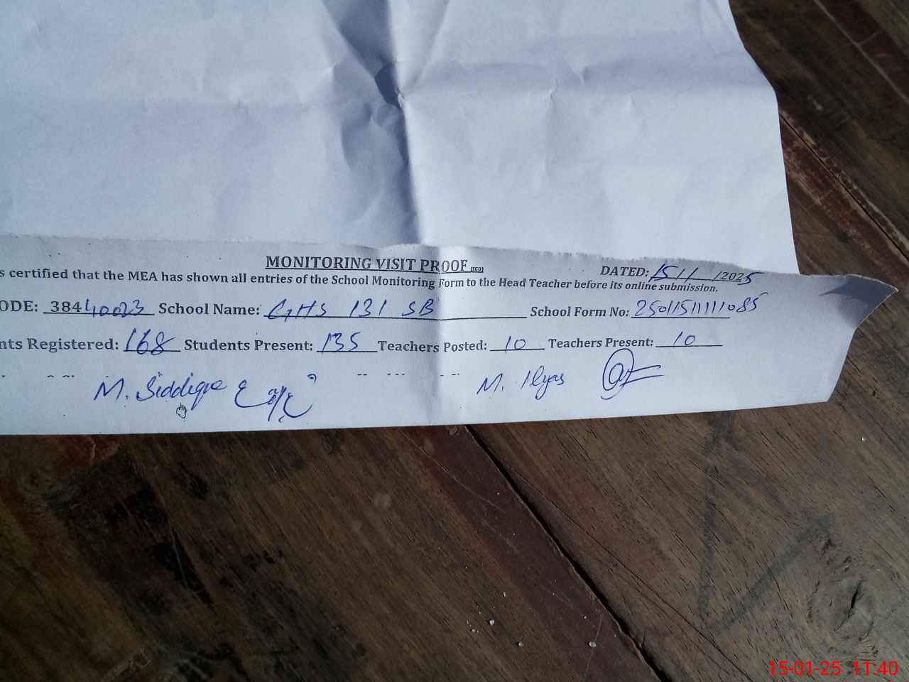 | Certified that this School was Inspected by the Undersigned MEA/DMO Today and the Information Stated Above is as Per Record. | |||||