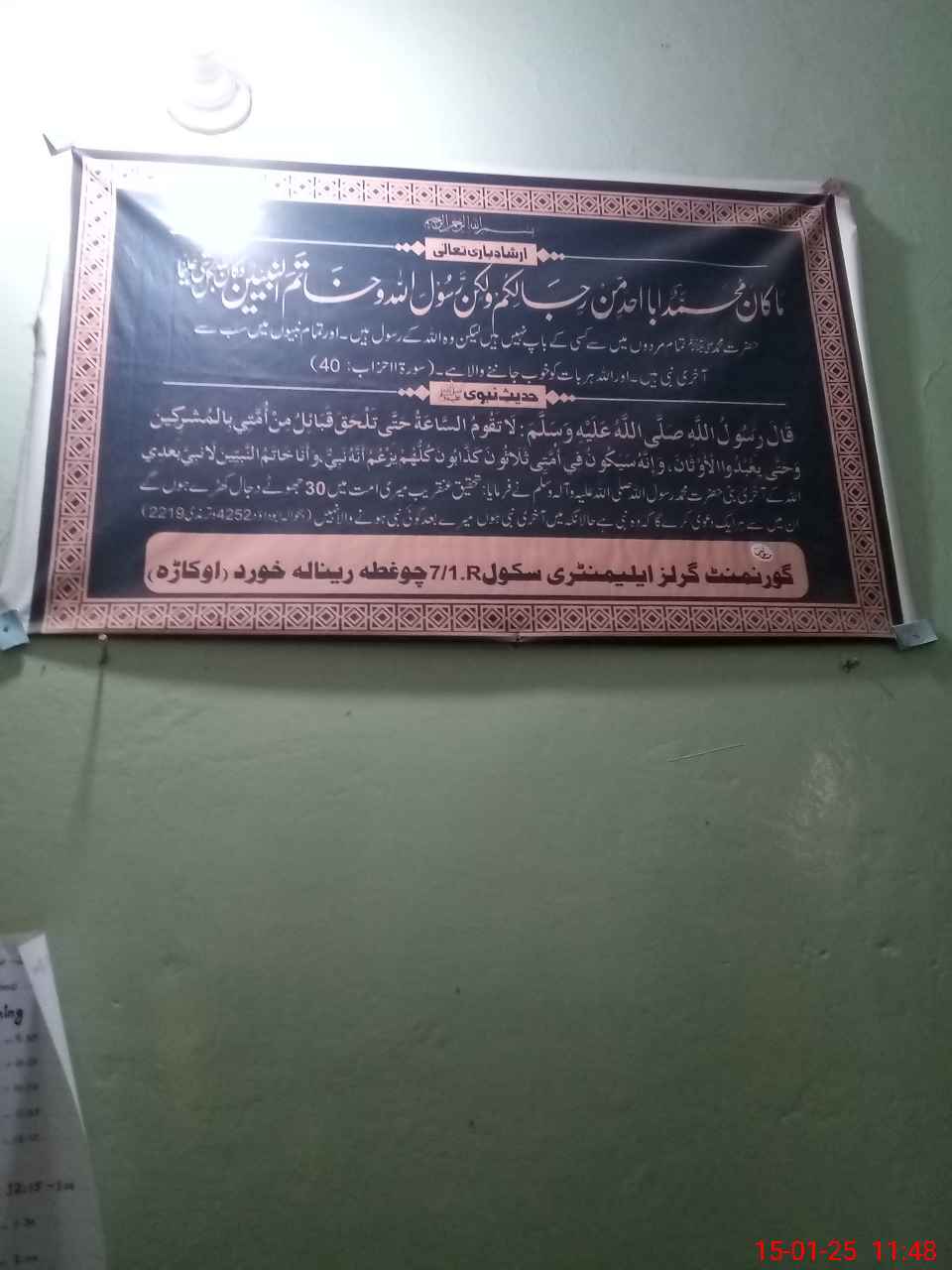 | District: OKARA | Tehsil: RENALA KHURD | Markaz: 4/GD - FEMALE | Level: Middle | |