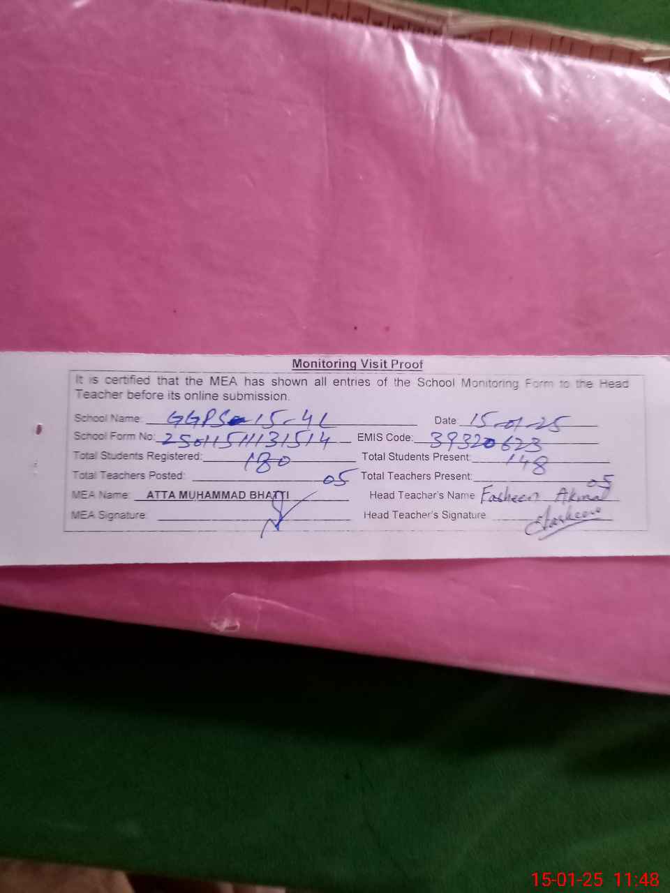| Attendance Register | Head Teacher | MEA with School | Visit Proof |