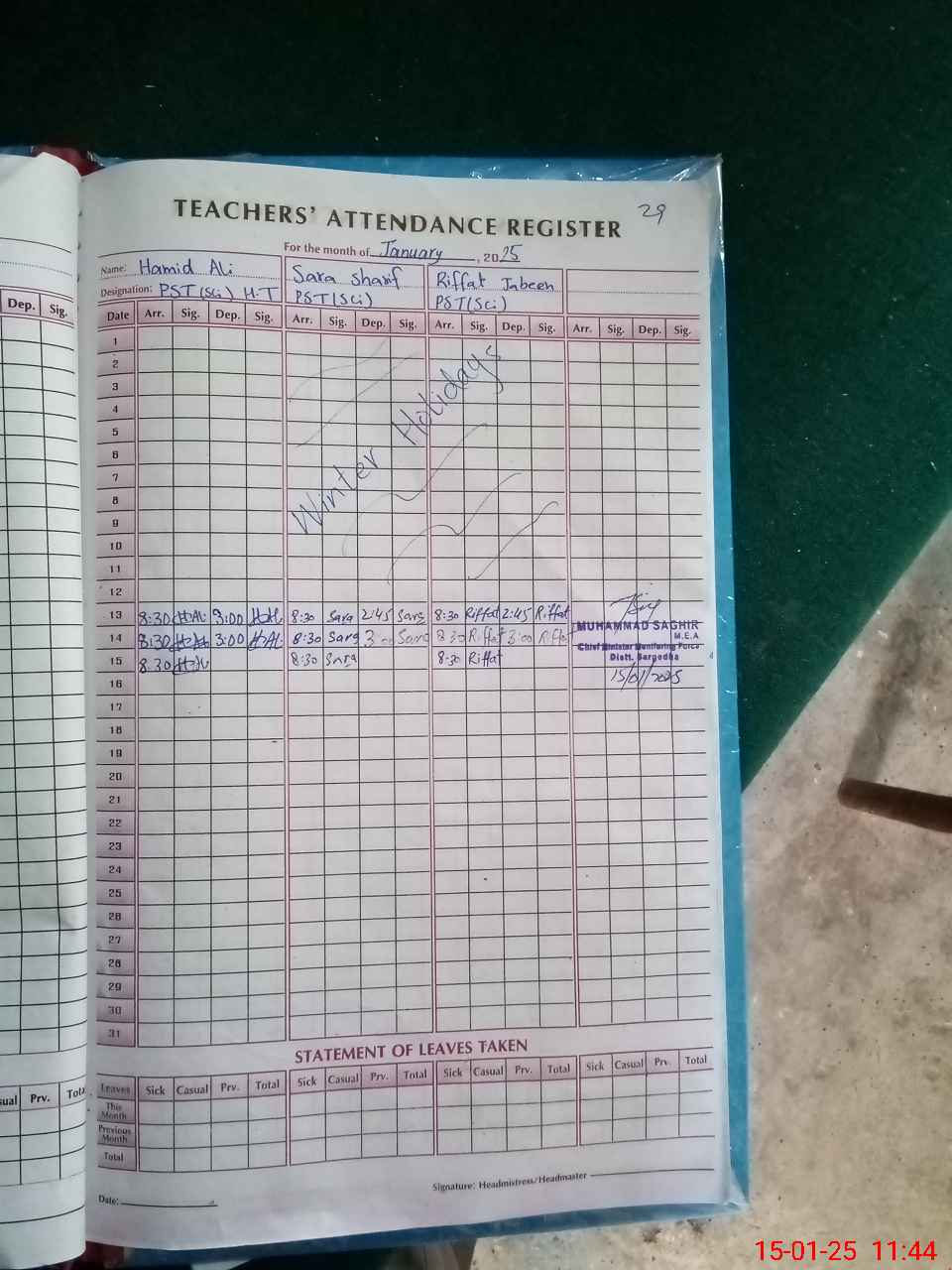 | Name: HA**** AL**** Designation: (School Headmaster's/Headmistress's) PST Phone/Cell Number: 03**** |