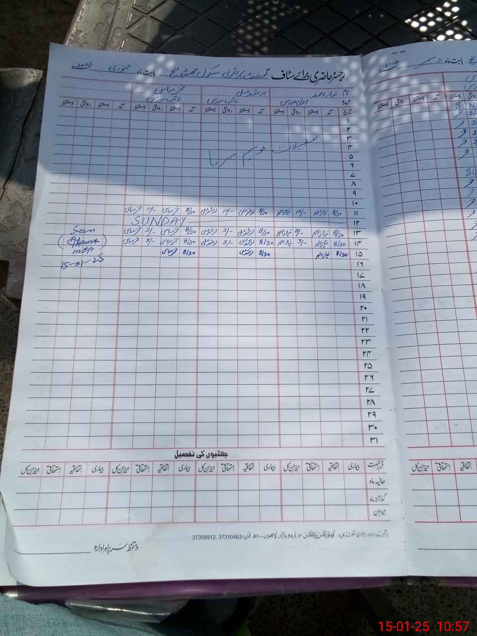 | CNIC | Full Name | Designation | R/C | Absence During Last Calender Month |