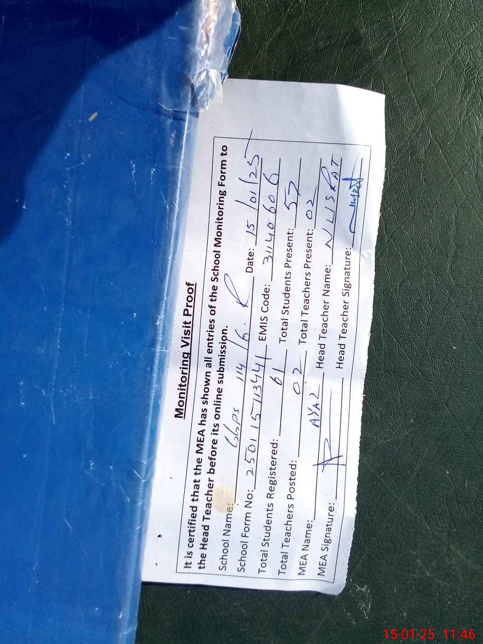 | EMIS Code: 31140606 | Name of School: GGPS CHAK NO. 114/6-R | |||