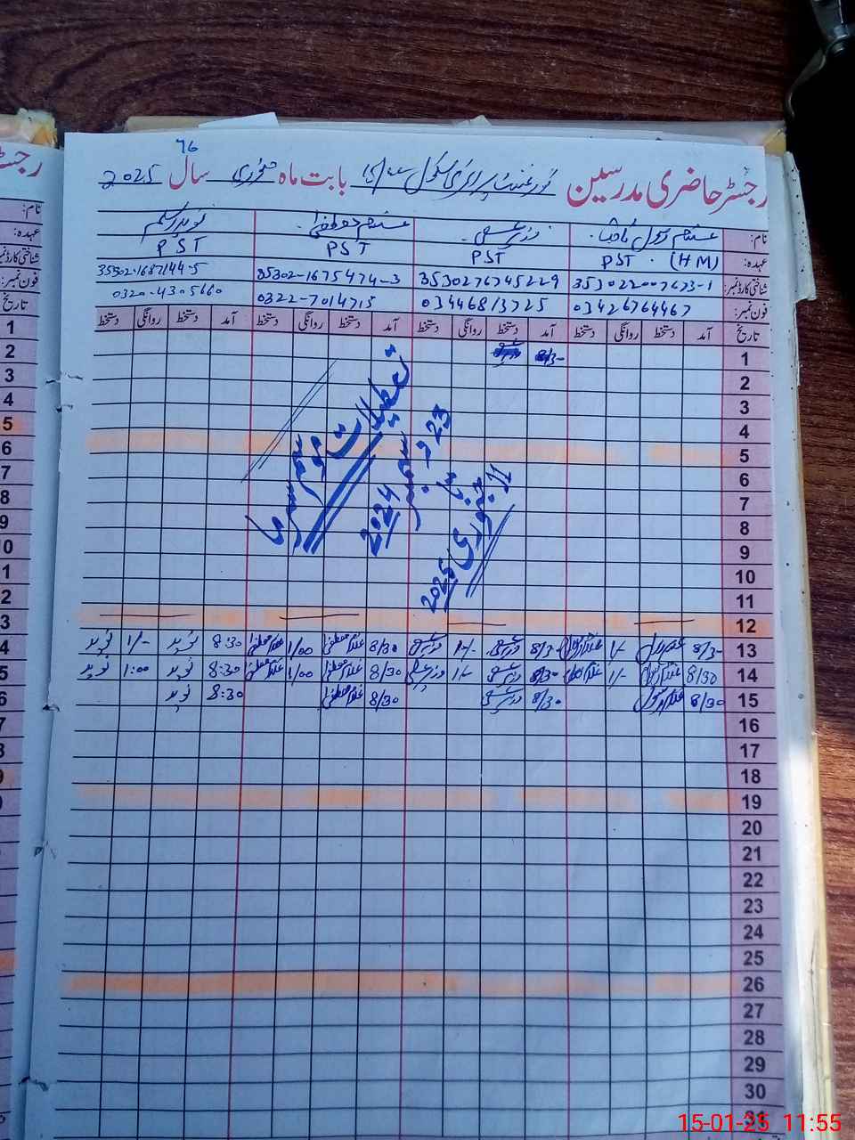 | Name: Na**** As**** Designation: (School Headmaster's/Headmistress's) PST Phone/Cell Number: 03**** |