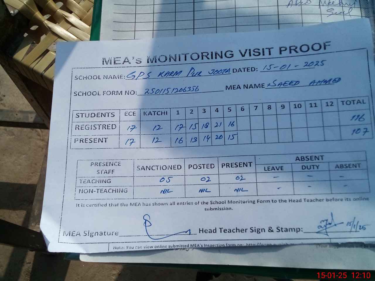 | EMIS Code: 36410199 | Name of School: GPS KARAM PUR JOOTA, P/O KUKKAR HATTA, KABIRWALA | |||