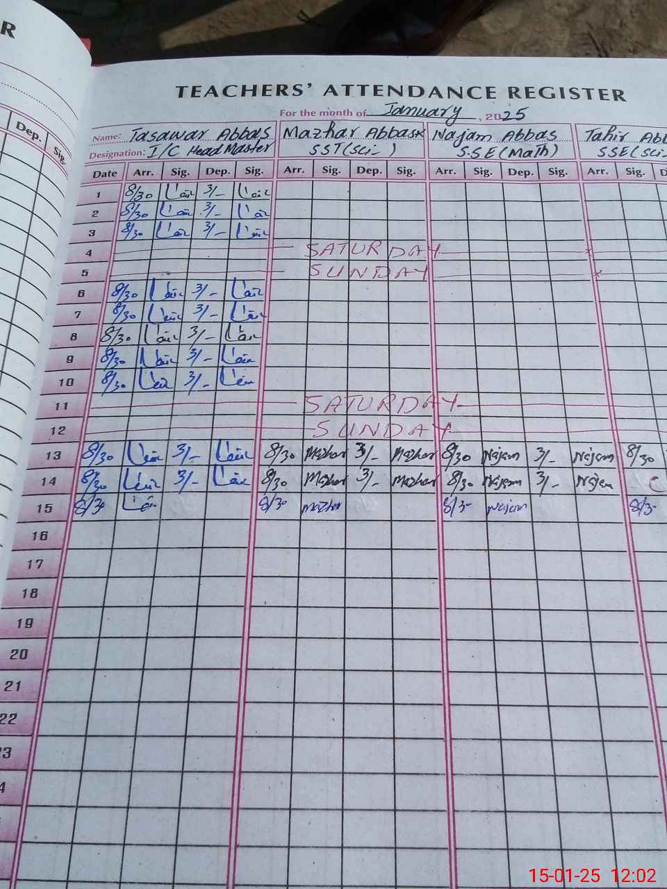 | 33**** | Mu**** Wa**** Aj**** | 3 | 1 | 0 | 0 | 0 | 0 | 0 | 0 | 0 | 0 | 0 | Absent (Un-Authorized) |