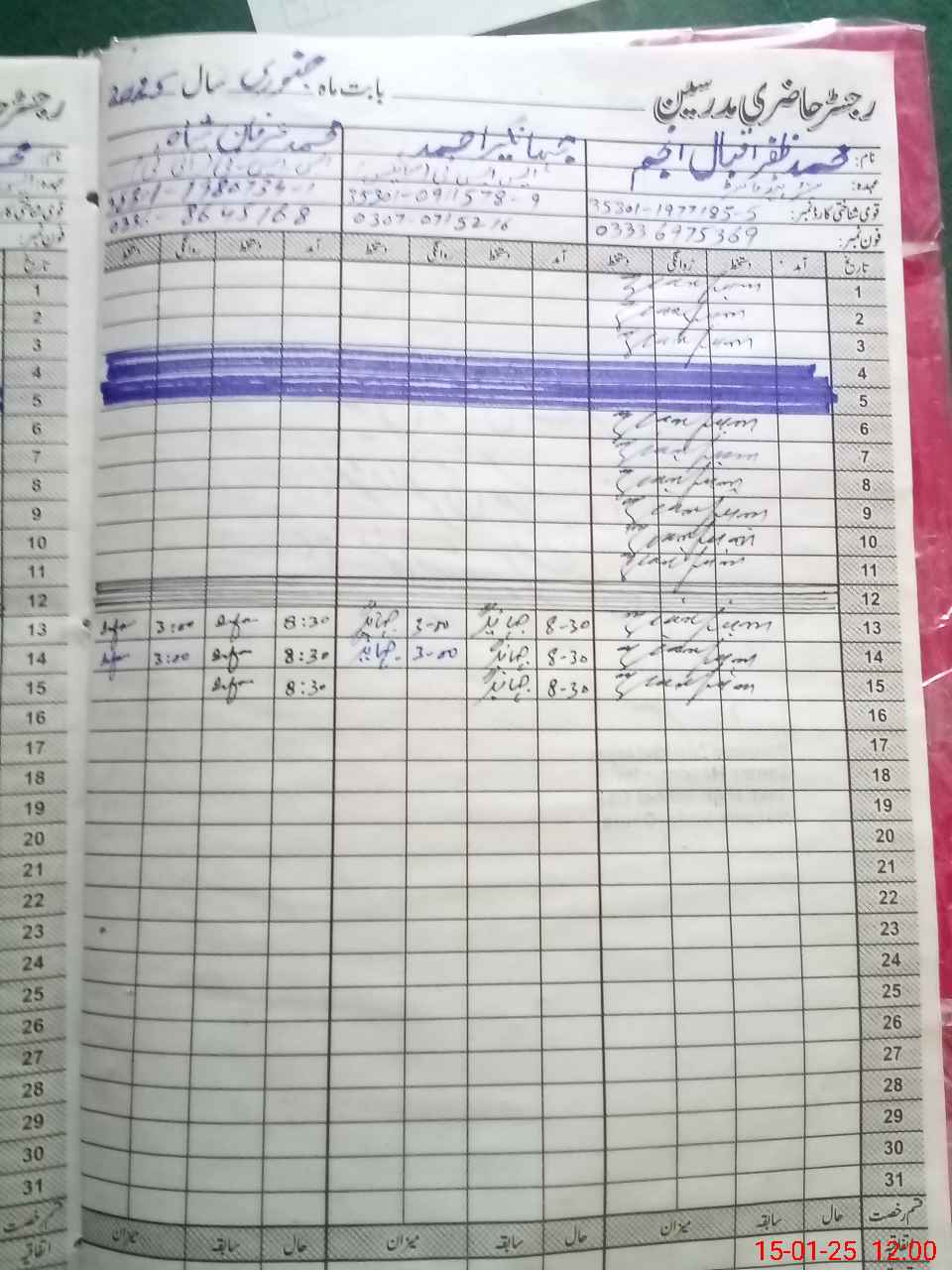 | Name: MU**** ZA**** IQ**** AN**** Designation: (School Headmaster's/Headmistress's) S.H.M Phone/Cell Number: 03**** |