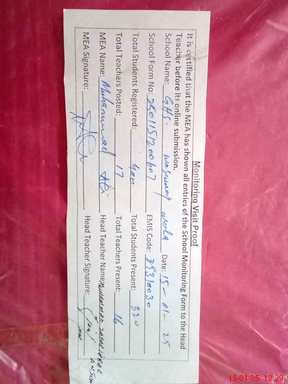 | EMIS Code: 39310030 | Name of School: GHS WASAWEY WALA | |||
