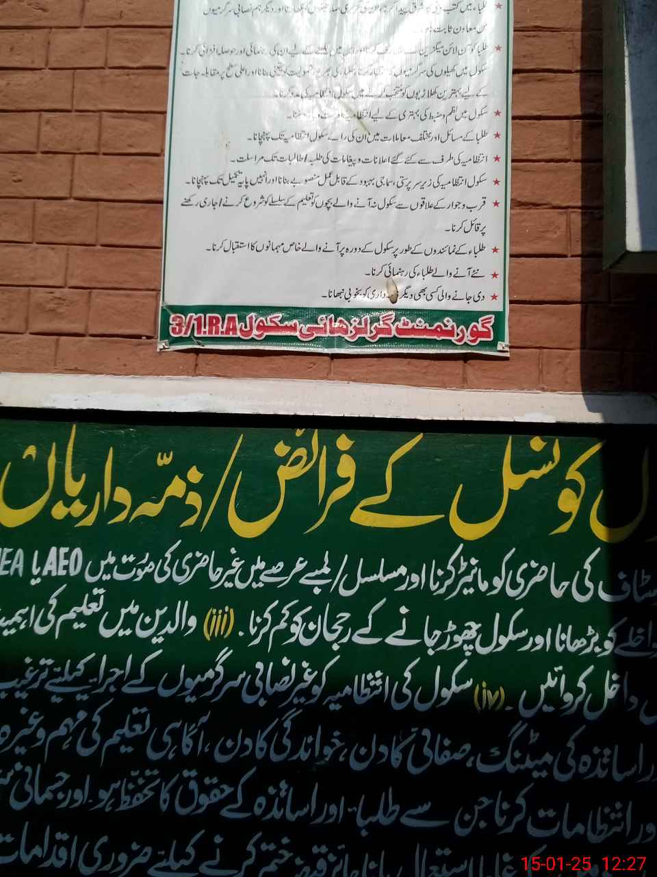 | EMIS Code: 39330729 | Name of School: GGHS CHAK NO.3/1RA | |||